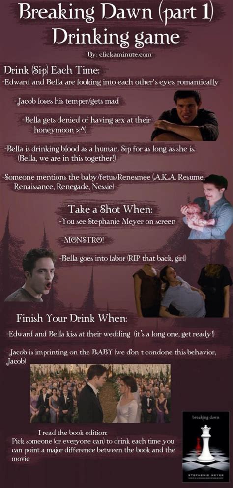 Breaking Dawn Part 1 Drinking Game. Breaking dawn part 1 and part 2; Web the twilight saga: