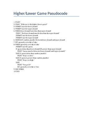 It 140 Higher/Lower Game Pseudocode. Web southern new hampshire university. Web in case of higher print higher, in case of lower print lower, in case of equal break or call exit (probably breaking will.