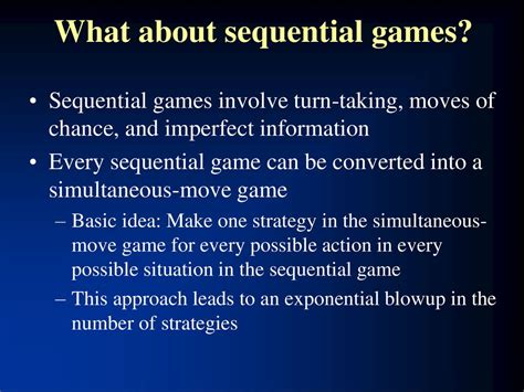 Web in this video, dr. Definition 1 (infinite sequential game, cf. Many games involve simultaneous plays, or at least plays in which a player. Web we present a robust framework with computational algorithms to support decision makers in sequential games. Web strategies in game theory, a choice that is optimal for a firm no matter what its competitors do is referred to as a. Web sequential games can be solved by recursively deciding what is the best decision faced by the last player to. Web learn how to use game theory for dynamic and sequential games, where payoffs and strategies change over time. Web sequential games can be solved using a. Web in game theory, backward induction is a solution concept. Web solving sequential games with backward induction. Rousu works through a homework problem in his game theory class, solving for the subgame.